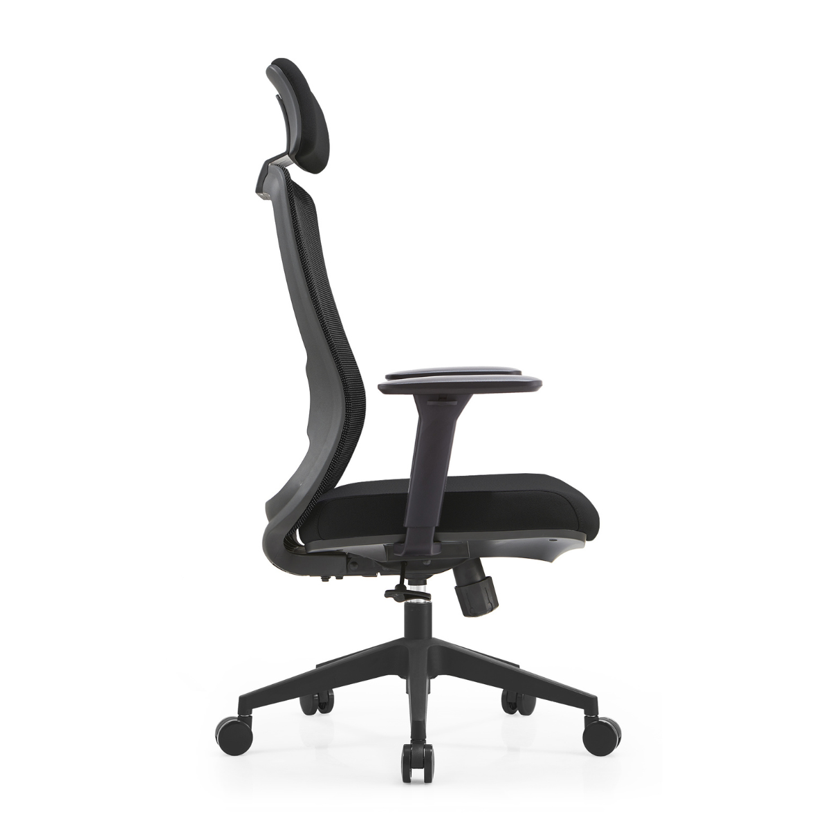 Seu encosto de 90 cm, produzido em Mesh Premium, oferece excelente ventilação e suporte lombar, mantendo o conforto térmico durante o uso. A estrutura em nylon injetado confere resistência e durabilidade, suportando até 150 kg com total estabilidade.