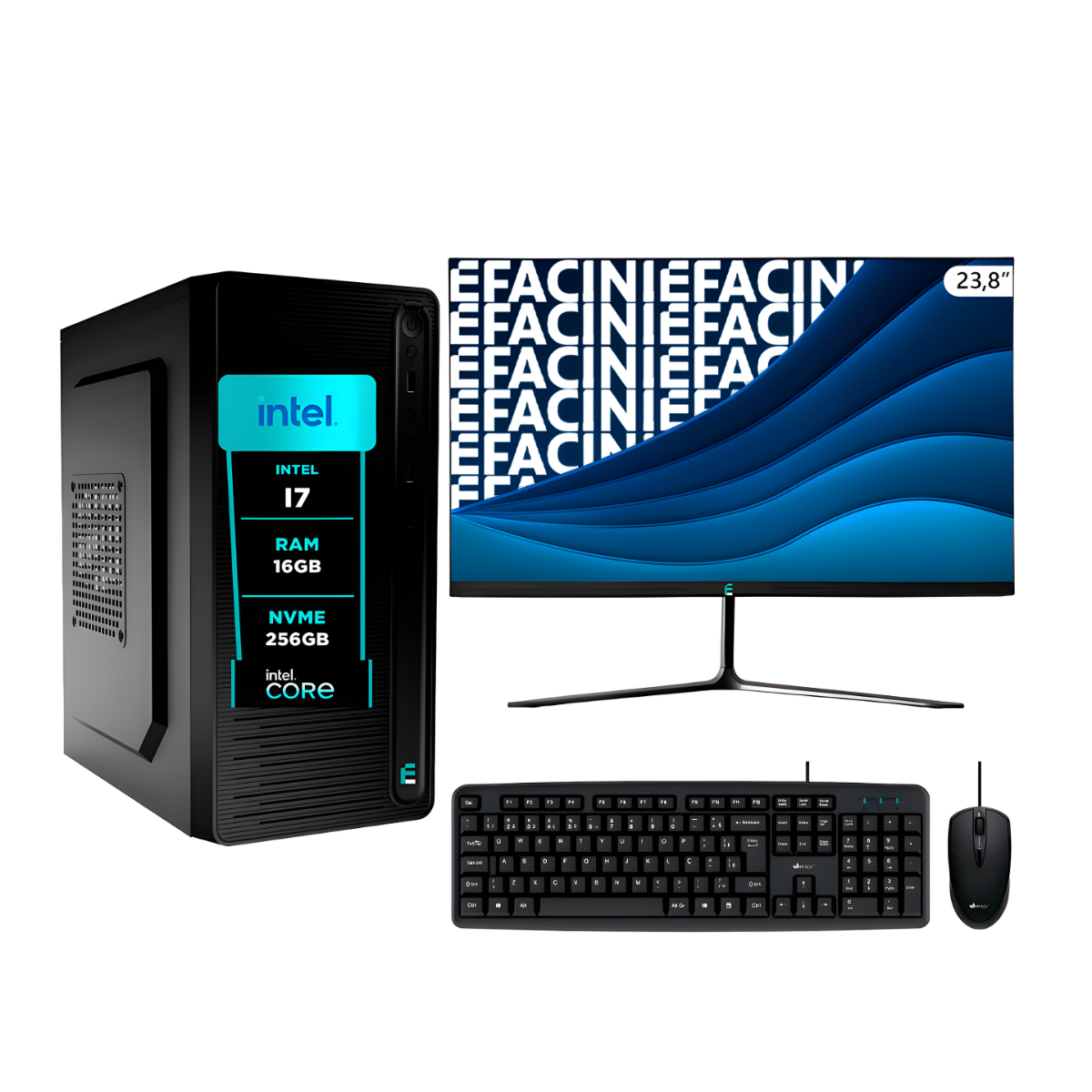 Computador PC Completo eFacini Intel Core i7 com 16GB de RAM e SSD NVMe de 128GB, 256GB, 512GB ou 1TB é a escolha certa para quem precisa de potência, espaço e fluidez em todas as tarefas. Seja para trabalho, estudo, edição de vídeos, design gráfico, games ou home office, este computador oferece desempenho superior e confiabilidade.